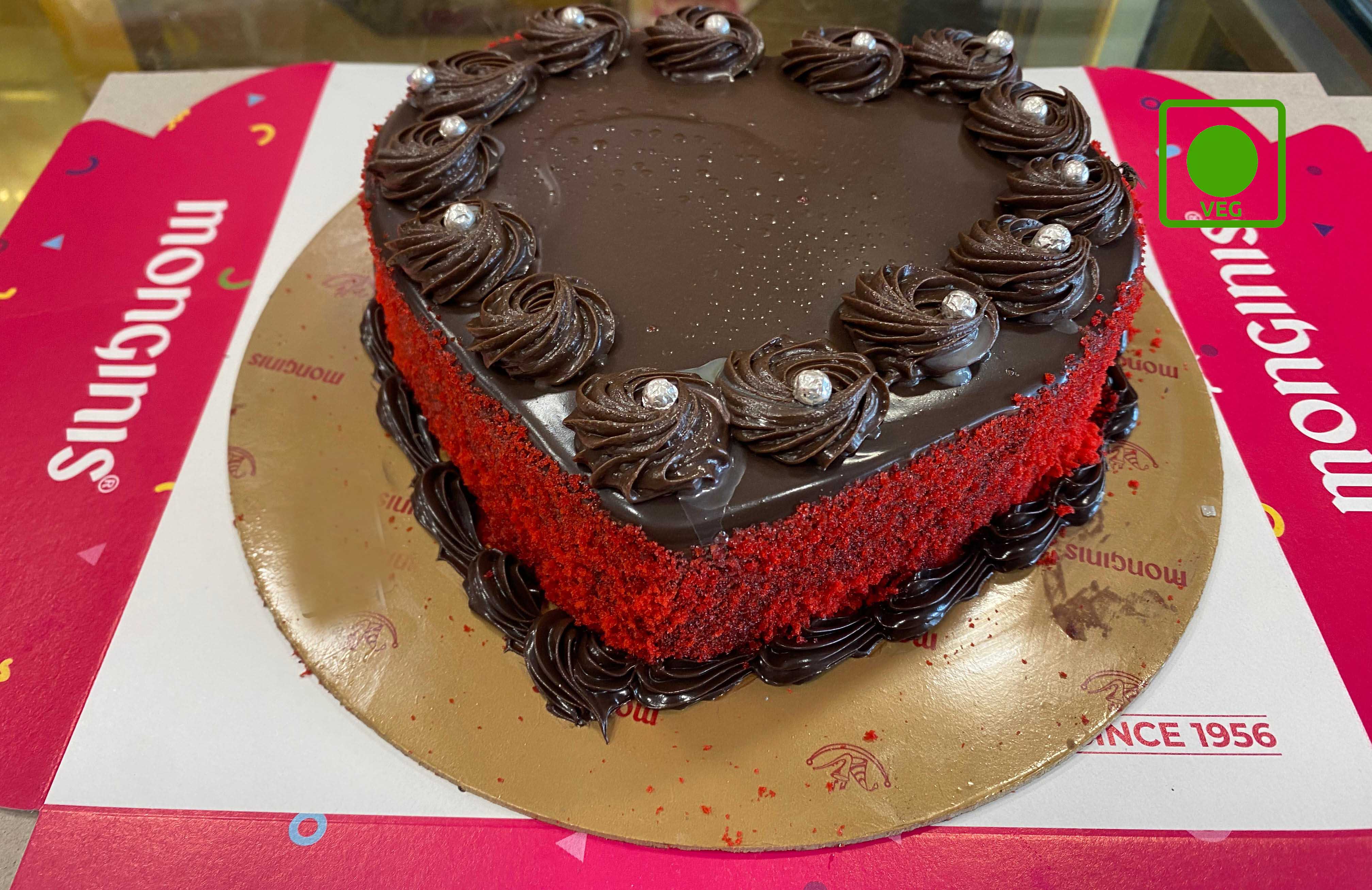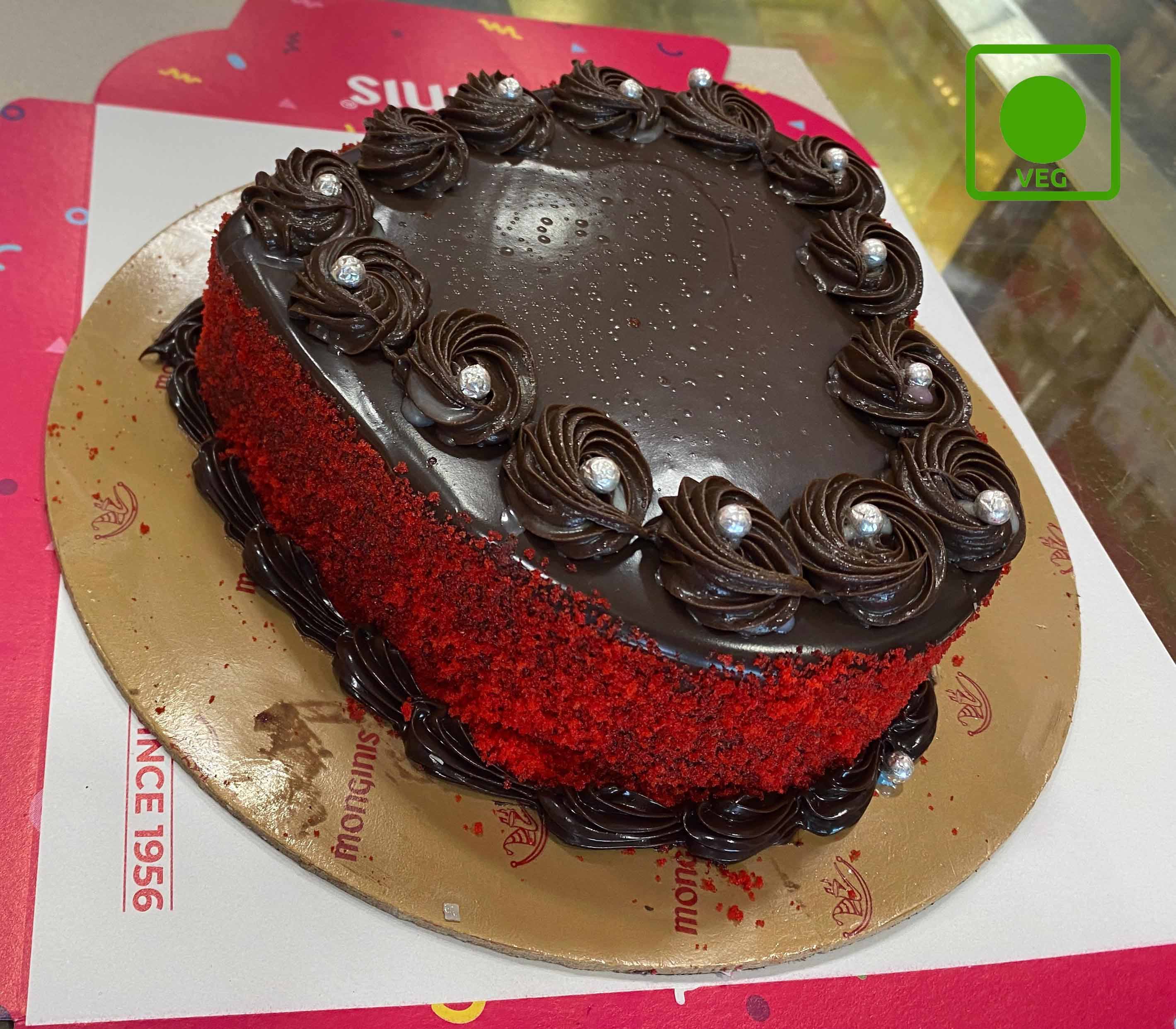 A charming red velvet heart cake with rich red velvet layers, creamy frosting and a hint of cocoa.